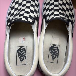 Vans women’s 8.5 Checkered Slip-On Shoes - Black and White