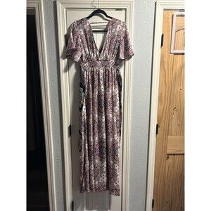 Altar'd State Maxi Dress Womens Medium Boho Floral Flutter Sleeve Elastic VNeck