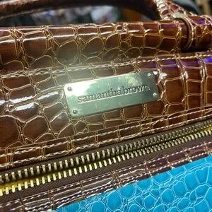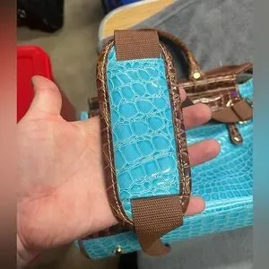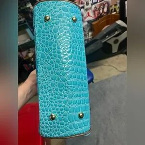 🔥 Croc-Embossed Samantha Brown Aqua Dowel Bag