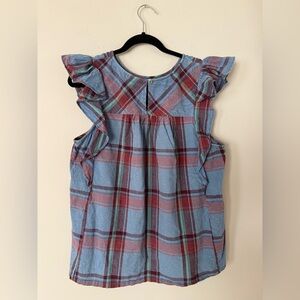 By Anthropologie Amarette Plaid Ruffled Sleeve Boho 100% CottonTop