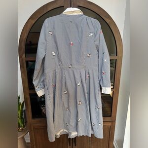 EUC ModCloth Broadcast Coordinator Striped Blue Floral Shirt Dress