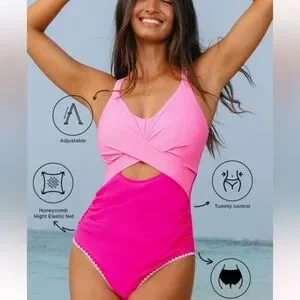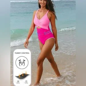 Stylish pink rose red cutout swimsuit with a flattering design. Perfect for beach days.