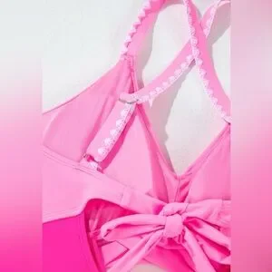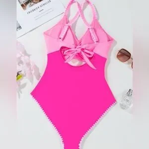 Pink Rose Red Ric Rac Trim Contrasted Cutout One Piece Swimsuit size 16