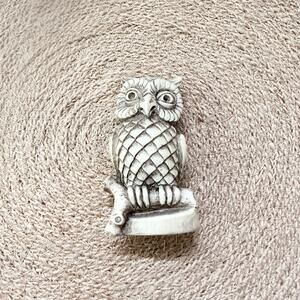 Vintage Hand Carved Perched Owl on Limb Figurine 2.25" Made Italy Shelf Sitter