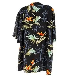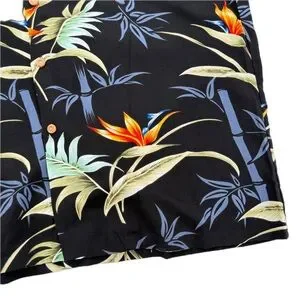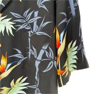Paradise Found Hawaii Bamboo Paradise Black Hawaiian Shirt Men's Size Large