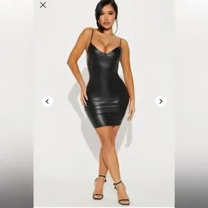 NWT Fashion Nova Natalie faux leather mini dress spaghetti straps bodycon dress