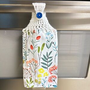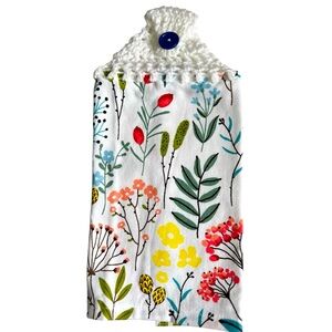 HAND CRAFTED Colorful Wildflowers Crochet Top Hanging Kitchen or Bathroom Towel