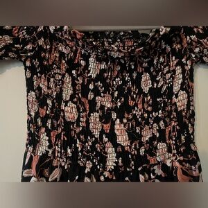 NWT Chic off-shoulder maxi dress with floral print. Features a ruffled hem and short sleeves. Ideal for casual or dressy occasions. EUC excellent condition & quality! New! Measurements in photos. Polyester. Women’s size small! Smoke free home