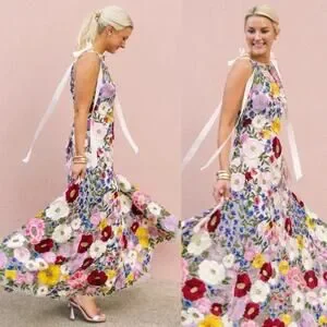 The statement silhouette of the season, the Nya Dress focuses on craftsmanship, featuring hand embroidered florals across a Midi length silhouette. Complete with shoestring shoulder straps. This style is sold with a slip.