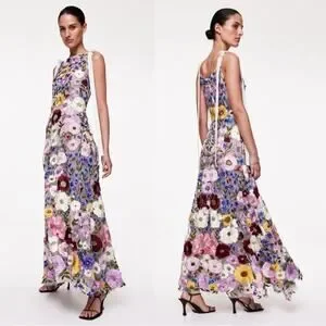 Rachel Gilbert Nya Floral Hand Embroidered Gown Textured 10 US