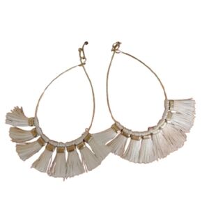 Women's White And Gold Tear Drop Hoop Tassel Earrings