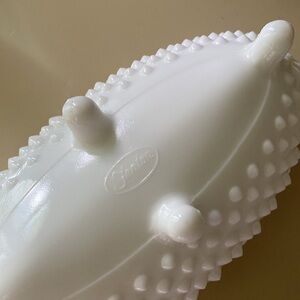 Fenton milk glass hobnail footed candy dish