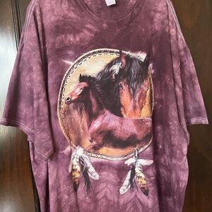 Delta Pro Weight Purple Tie Dye Horses Dreamcatcher Nature T-Shirt Y2K