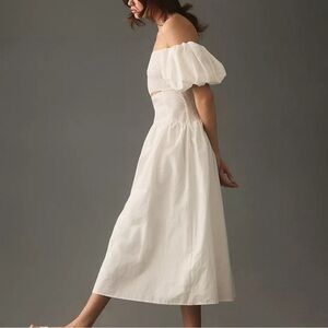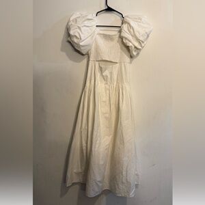 NWOT. White cotton pullover, smocked bodice maxi dress. Perfect for summer. Runs a little big (fits like a size 6-8)