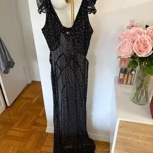 Realisation silk polka dot ruffle maxi dress