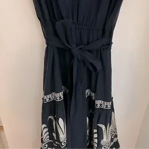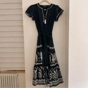 Navy blue short sleeve midi dress. Fun for summer and can be dressed up or down! Flattering flutter sleeves and tie waist. NWT.