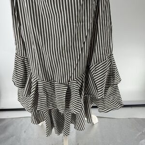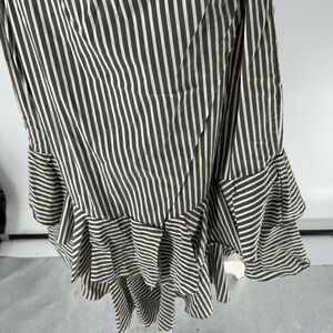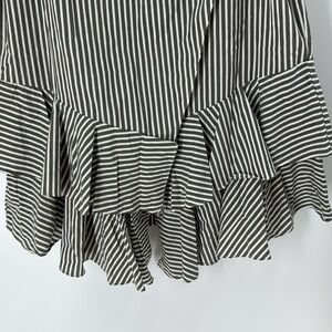 Sassy, fun and flirty, cotton blend ruffle detail skirt, faux wrap style with pretty ruffles, attached fabric belt to tie as you like, perfect dinner out, date night, dancing, club, resort, travel, cute over a bathing suit after beach or pool, brunch, get together with the girls, fairy core, soft girl coquette style, the color is a muted olive green and is pictured best in the name & care tag pictures, pretty summer skirt, gentle wear, looks almost new, very nice pre loved condition.