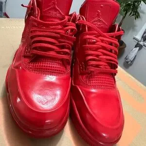 Elevate your look with these striking red Jordan sneakers. Iconic style meets comfort.USE LIKE NEW RIGHT SNEAKER UPPER SIDE DAMAGE LOOK at THE PICTURE PLEASE THANK YOU