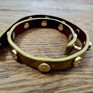 Elegant gold studded leather bracelet, perfect for adding a touch of luxury to any outfit.