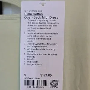 Elegant backless midi dress. Made with breathable pima cotton. Features open back and side slits. Perfect for comfort and style. NWT. Non smoking No pets household.