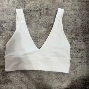Elegant white V-neck sports bra. Ideal for active wear or casual outings.
