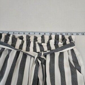 Size medium vertical wide gray and white stripe pants. Paper bag elastic waist with belt. Side pockets. Flowy and soft. 100% viscose. Approx measurements: