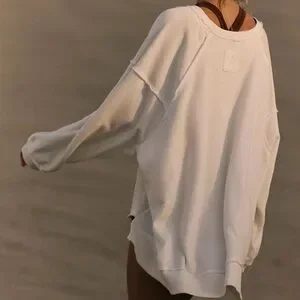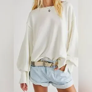 Embrace a relaxed vibe with this cream oversized hoodie from We The Free, featuring a boxy silhouette and asymmetrical hemline for a modern twist. The soft, drapey fabric ensures comfort and style, making it a versatile addition to your wardrobe.