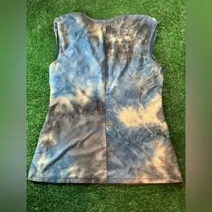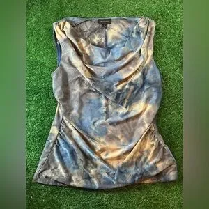 AB Studio Y2K Gray and Blue Ruched Sleeveless Embroidered Cowl Neck Tank Top