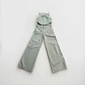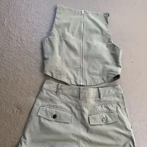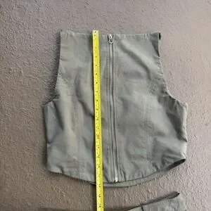 WAYF Green Two-piece Set Cropped Vest W back Zip & Wide-leg Oversized Pants Sz S