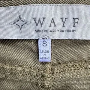 The WAYF Olive Green Two-piece Set in size S includes a cropped top and wide-leg oversized pants. Made from a comfortable cotton blend material, this set is perfect for casual or travel occasions during the warmer seasons of summer, fall, and spring. The sleeveless top with a zip closure and solid green color adds a stylish touch to the outfit, making it a versatile and trendy choice for women looking for a relaxed yet fashionable look.