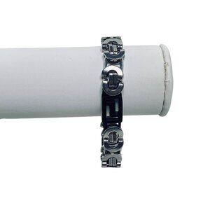 This robust vintage bracelet features a Byzantine box link design in stainless steel, offering durability and a timeless aesthetic.