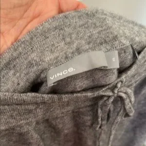 This elegant gray pencil skirt by Vince is designed for both casual and work settings. Its knee-length cut and fitted silhouette offer a sleek and professional look, making it a versatile piece for any wardrobe.