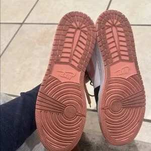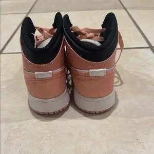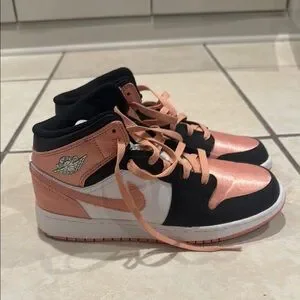 Chic Nike Air Jordan Mid with a black, white, and peach palette. Ideal for everyday style. Worn once. Inside tag says youth 6 which would fit a women 8 also even a boy/men 4