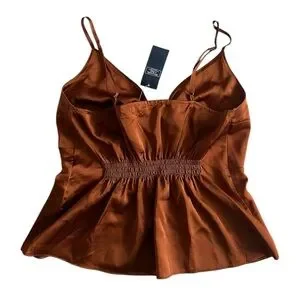 New with tags Abercrombie & Fitch dark orange satin camisole with a stylish tie-front design. Elastic back and adjustable straps. Perfect for casual outings or a night out and a great for layerings.