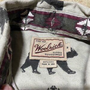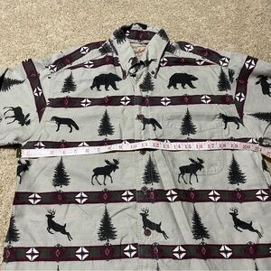 Woolrich Moose Deer Outdoor Tree Forest Aztec Flannel Long Sleeve Button Medium