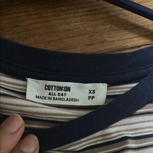 Cotton On Navy and Tan Striped Tee