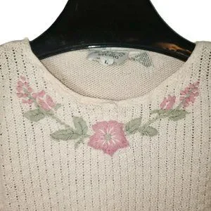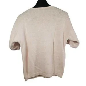 VTG Chain/Waffle Knit Short Sleeve Sweater Pastel Pink Embroidered Rose Floral