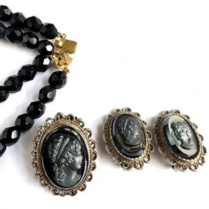 Vintage Black Cameo Necklace Set