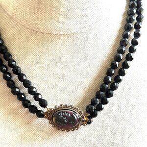 – Necklace is made of two strands of faceted black glass beads
