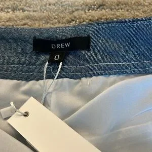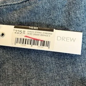 New! Never worn. DREW blue mini skirt. Zip front, silver button enclosure.
