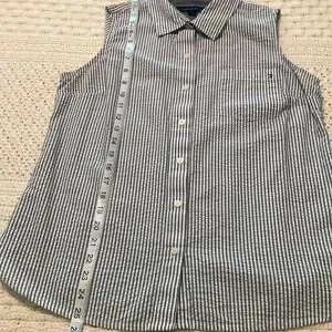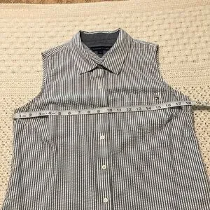 Tommy Hilfiger Blue and White Sleeveless Button Down Shirt