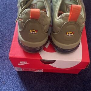 Women’s Nike Vapormax Plus Olive Green and Orange Athletic Shoes