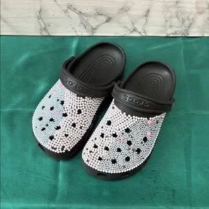 These CROCS slippers offer a delightful blend of comfort and style with their black and pink color scheme. Featuring a classic clog silhouette and a playful perforated design, they are crafted from durable materials perfect for everyday wear.