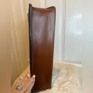 The briefcase is perfect for carrying documents, a laptop, and other essentials. The solid brown color and briefcase/document case style make it a versatile addition to any outfit.