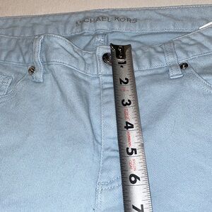 Women’s EUC MICHAEL KORS Lgt Blue Women's Jeans Sz 8 Handmade Crocheted Hearts
