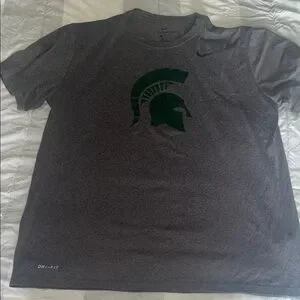 Nike heather gray tee featuring MSU Spartan logo. Dri-FIT technology for comfort. Excellent condition.