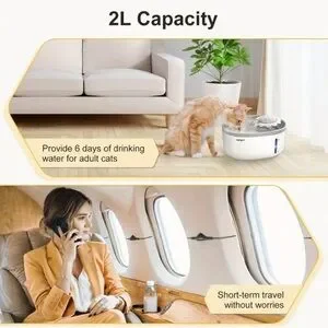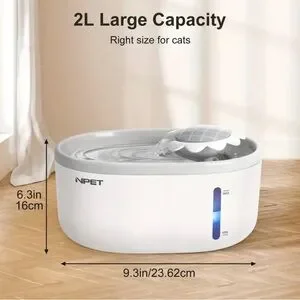 Large capacity water fountain for cats. Dimensions: 9.3in x 6.3in.