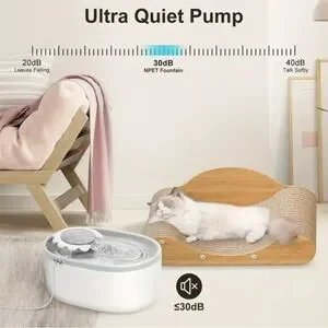 White Grey 2L/ 67oz Automatic Pet Water Fountain with Quiet Pump