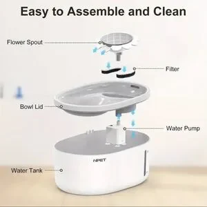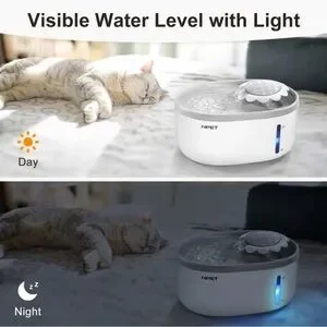 White Grey 2L/ 67oz Automatic Pet Water Fountain with Quiet Pump, Cat Water Fountain with Visible Water Level Window, Dog Water Dispenser for Drinking cute safe auto Fountain, Without Battery