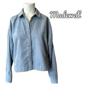 Chic light blue corduroy shirt by Madewell. Features button-up closure and classic collar.